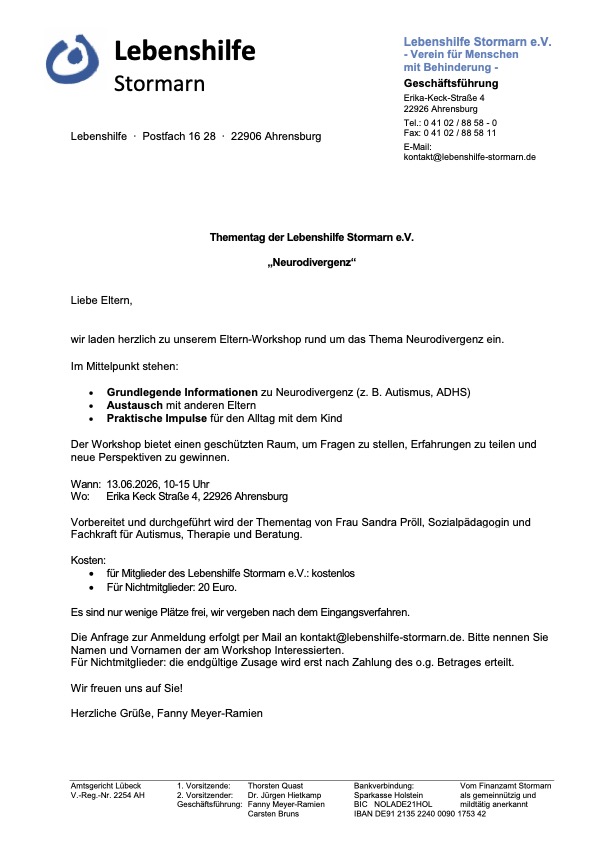 Zeige grösseres Bild Elternbefragung Mein Kind in der Schule: Unterstützung und Barrieren im Schulalltag von Kindern mit sonderpädagogischem Förderbedarf Zur Elternbefragung Von Oliver Stapelfeldt|2025-08-08T11:17:13+02:008. August 2025|Aktuelles|0 Kommentare Teilen Sie diesen Artikel! FacebookXRedditLinkedInWhatsAppTelegramTumblrPinterestVkXingE-Mail Über den Autor: Oliver Stapelfeldt Ähnliche Beiträge Einladung Thementag „Neurodivergenz“ Gallerie Einladung Thementag „Neurodivergenz“ Sepp-Herberger-Award 2026 für den SV Eichede Gallerie Sepp-Herberger-Award 2026 für den SV Eichede Mediennutzung im Brummkreisel Gallerie Mediennutzung im Brummkreisel Inklusion braucht Dialog Gallerie Inklusion braucht Dialog
